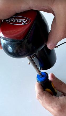 Nuestro pomo cabe a la perfeción en el el tubo original, por lo tanto únicamente hay que montar el pomo en el tubo, una ves dentro deberá quedar un poco suelto, para asegurarlo, debemos atornillar ligeramente el tornillo que se encuentra al frente del pomo hasta que se sienta seguro.